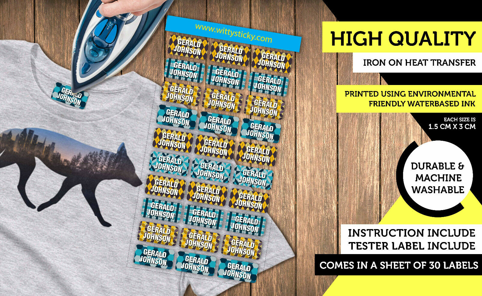 Designer Pattern Iron On Heat Transfer Personalised Name Label